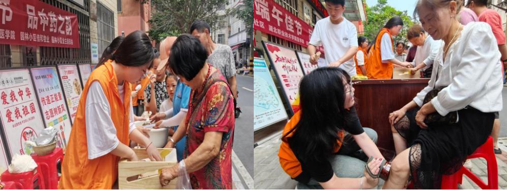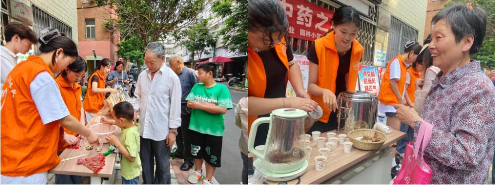 活动内容包括中医药知识讲解、中药辨识与疾病防治、五谷杂粮与养生、五花茶与保健。一些互动活动如手制艾条、艾灸体验、趣味投壶迎香包,特别吸引居民的兴趣。人们围着边看边问边体验。一场规模不算大但温暖温馨的活动受到社区居民的欢迎和点赞。现场师生的专业讲解让他们体会到略带苦涩味道的中药,“骨子”里还浸透着百草的清香。社区居民表示:这个活动有知识、有趣味、有文化,养生养心。