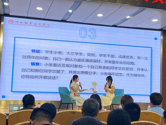 本次大赛共吸引了来自全校各学院的辅导员参与,经过初赛、复赛的层层选拔,最终九名选手脱颖而出,进入决赛。决赛以模拟谈心谈话的面试方式进行,选手们需要在规定时间内,针对给定的学生问题,进行深入的交流和引导,展现其作为辅导员的专业素养和人文关怀。