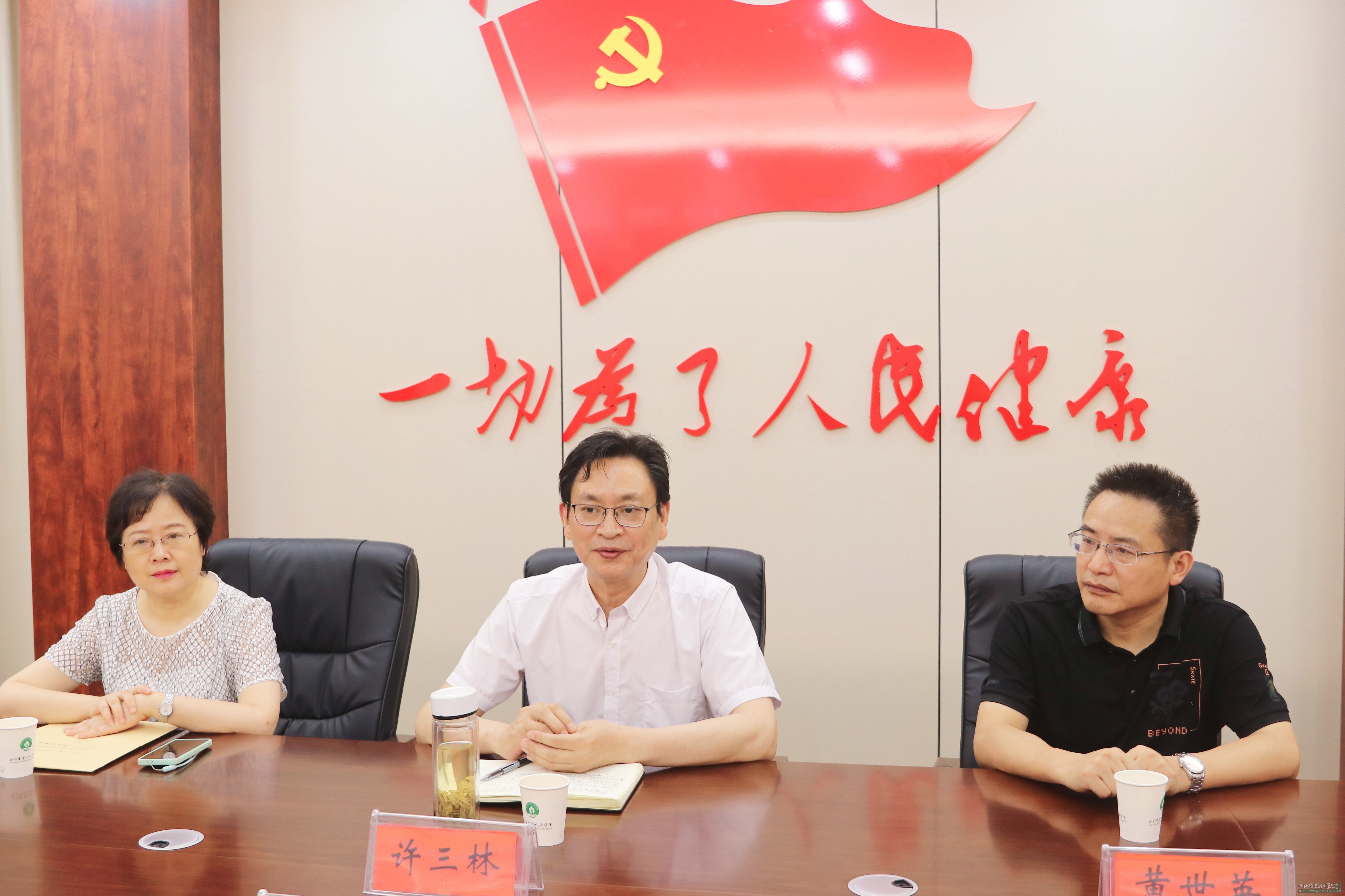 7月10日,澳门十大信誉好的网站院长许三林一行赴武穴市第一人民医院开展医教协同工作。武穴市第一人民医院院长陈友明举行了欢迎会。