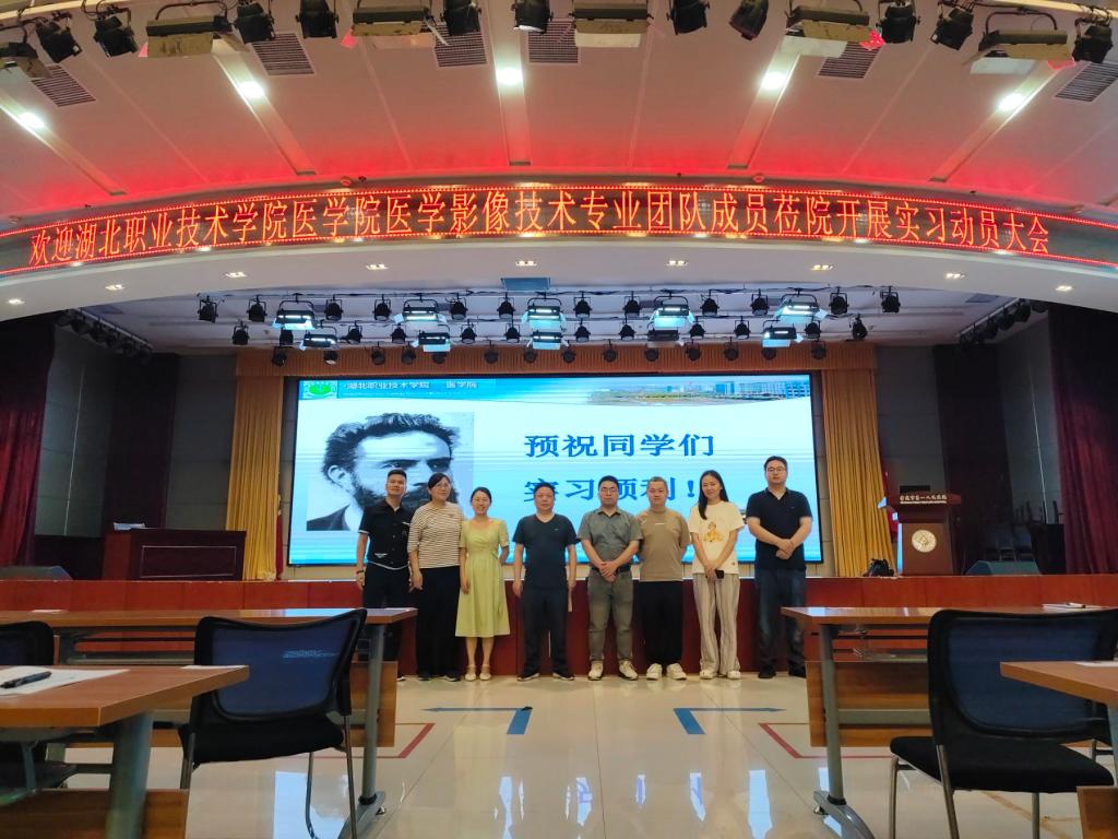 为了落实学校关于实习管理的有关规定,强化实习管理,明确实习内容,确保实习质量,根据澳门十大信誉好的网站的统一安排,2024年6月24日晚,医学影像技术专业在孝感市第一人民医院教学楼九楼会议厅召开了2022级实习动员大会。澳门十大信誉好的网站医学影像技术教研室全体成员、孝感市第一人民医院科教科徐月及周攀、喻坤、李智等三位辅导员全程参与了本次实习动员大会,会议由医学影像技术教研室陈新祥主任主持。