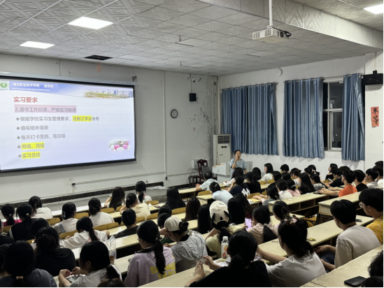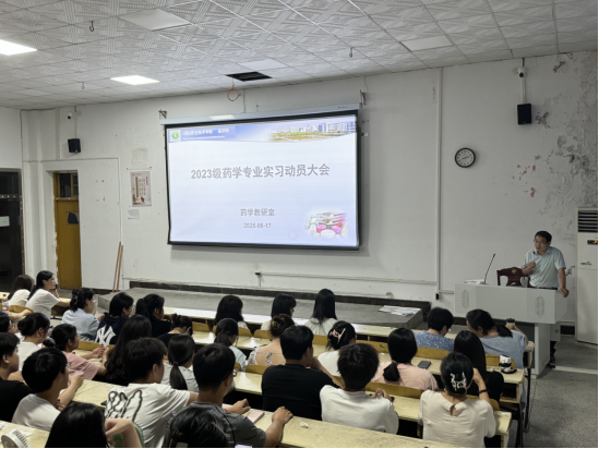 (本网讯 余佩)6月17日晚上,药学专业实习动员大会在201阶梯教室隆重举行。教学办胡建刚主任、药学专业全体教师及2023级药学专业全体学生参加会议,共同开启实习实践的新征程。