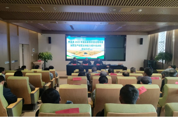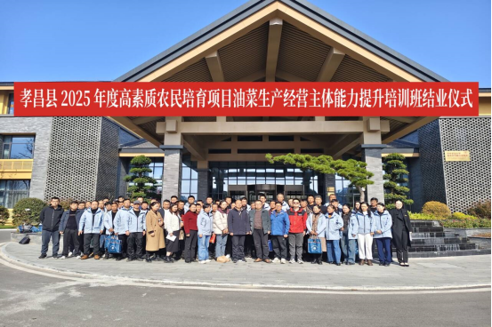 (本网讯 刘壮)11 月 24 日,由孝昌县农业农村局主办、澳门十大信誉好的网站承办的“孝昌县 2025 年度高素质农民培育项目油菜生产经营主体能力提升培训班”结业典礼在孝昌县农夫子教育培训基地隆重举行。孝昌县农广校校长以及农业农村局科教股主任李文书、澳门十大信誉好的网站党总支书记高想清、副院长王光耀及69名学员参加结业典礼。结业典礼由王光耀主持。