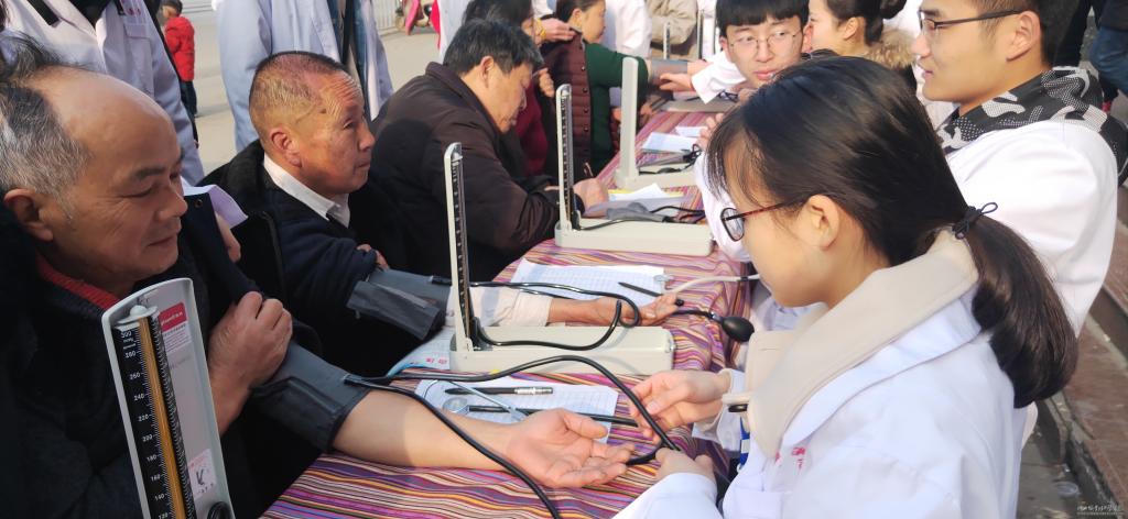 3月9日,团总支志愿者来到孝南区九真社区为老人义诊。