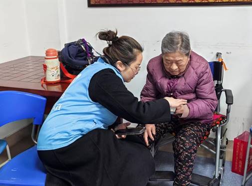 活动当天,蓝天医学社的志愿者们在指导老师王丹的带领下,早早地来到孝感市社会福利院。一进门,志愿者们便迅速融入其中,开启与老人们的温暖交流。有的志愿者凭借专业手法,轻柔地为老人按摩,手法娴熟,力度恰到好处,每一个动作都饱含着对老人的关怀;有的志愿者则坐在老人身旁,身体微微前倾,专注地陪老人聊天,静静倾听老人们讲述往昔岁月里那些或激昂、或温情的故事。整个现场,欢声笑语不断,温馨与融洽的氛围肆意流淌,老人们的脸上,无一不洋溢着幸福且满足的笑容。
