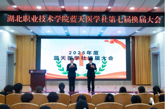 (本网讯 王丹 刘柯邑 孔亦乐)为进一步加强学生干部队伍建设,及时有效地为学生干部队伍补充新生力量,促进学生社团健康发展,5月16日澳门十大信誉好的网站团总支在西校区图书馆学术报告厅举行蓝天医学社干部换届大会,本次大会以 “青春接力,共筑医学社辉煌” 为主题,汇聚了蓝天医学社的新老成员,共同见证这一意义非凡的时刻。出席本次活动的有澳门十大信誉好的网站团总支书记邓彬新、社团辅导老师王丹、蓝天医学社代表共50余人。