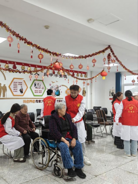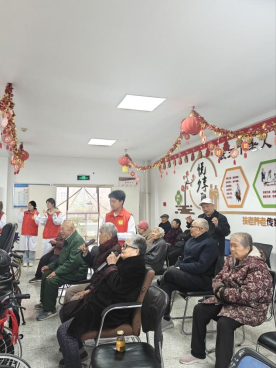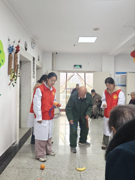爱心护理区则充满了欢声笑语。志愿者们专门为等候就医的老年患者搭建了“温情小舞台”,一首首《歌唱祖国》《映山红》等经典红歌轮番唱响,熟悉的旋律勾起了老人们的美好回忆,不少老人跟着轻声哼唱;活力四射的舞蹈表演节奏明快,志愿者们用灵动的舞姿传递着青春正能量,赢得现场阵阵掌声。最受欢迎的当属水果套圈小游戏,志愿者们提前准备了橘子、苹果等新鲜水果作为奖品,老人们踊跃参与,套中水果时的欢呼声响彻大厅,在轻松有趣的互动中有效缓解了就医带来的紧张感。